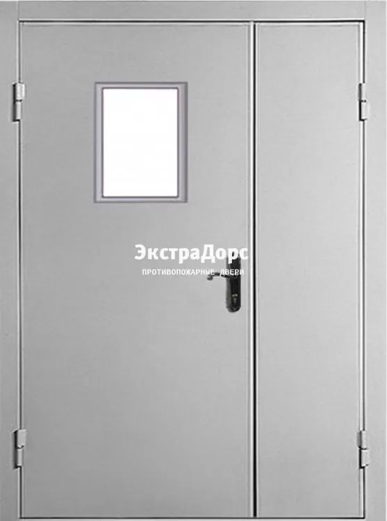 - Двупольная огнеупорная дверь с порошковым покрытием EI 60 двупольная остеклённая стальная