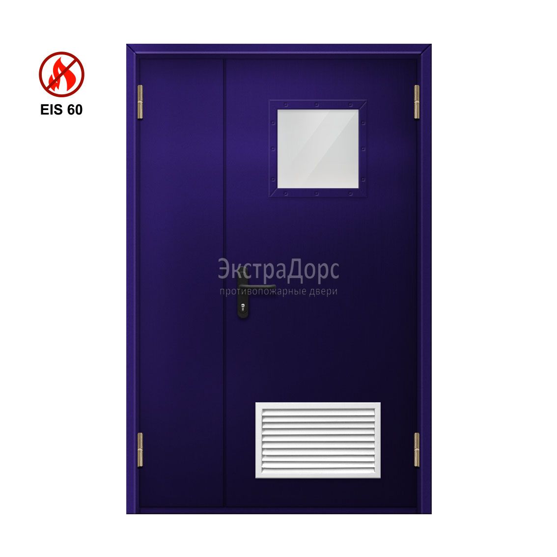 Противопожарная дверь EI 60 ДОП-EI-60 ДП117 полуторная остекленная с решеткой в Сергиев посаде