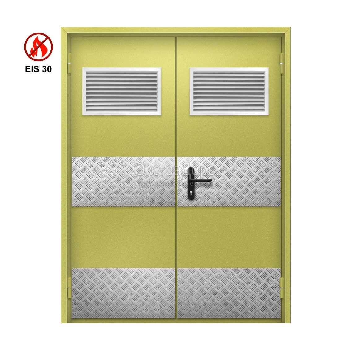 Двухстворчатая огнеупорная дверь EI 30 ДГ-02-EI30 ДП83 двупольная глухая с решеткой в Сергиев посаде