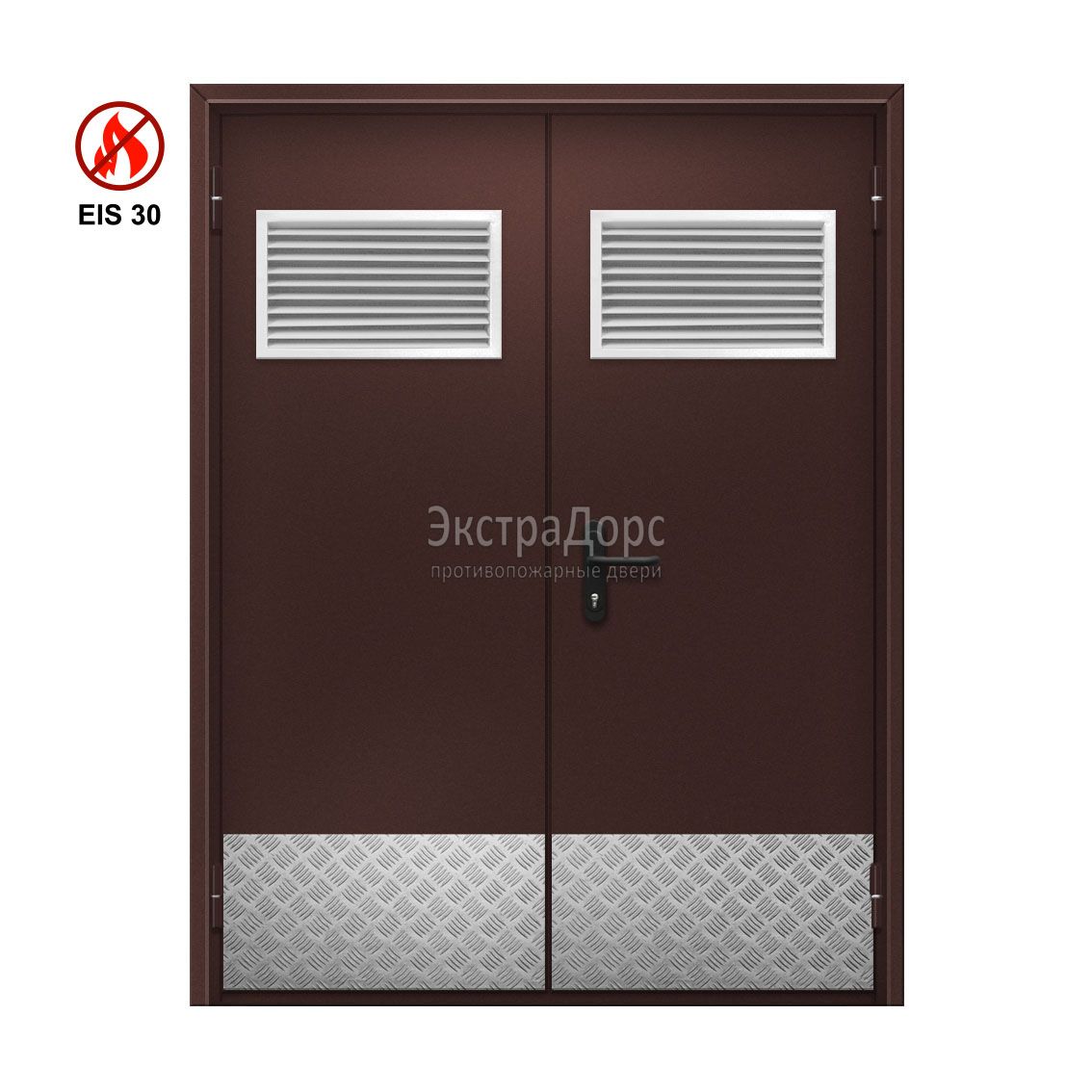 Двупольная противопожарная дверь EI 30 ДГ-02-EI30 ДП84 двупольная глухая с решеткой в Сергиев посаде