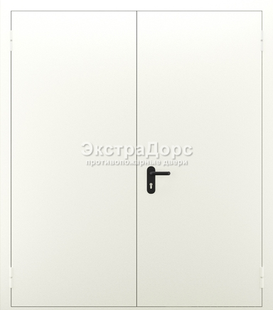 Металлическая противопожарная дверь ДМП-01-30 двупольная белая с огнестойкой ручкой в Сергиев посаде
