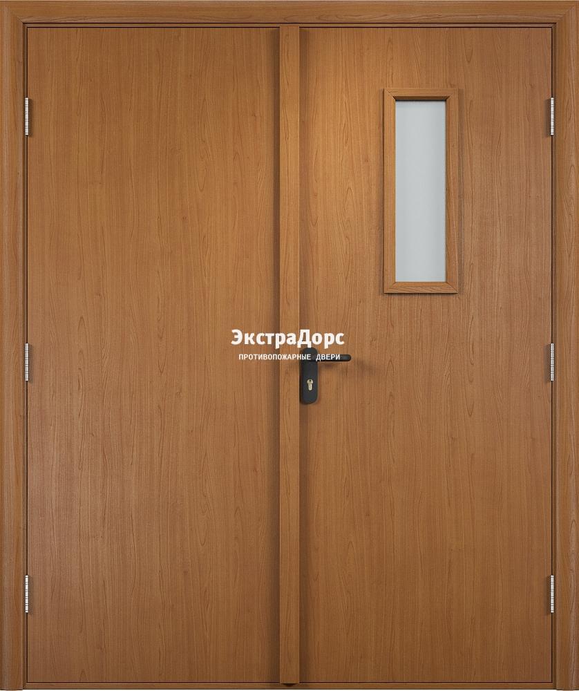 Двупольная противопожарная дверь ДМП-01-30 двухстворчатая со стеклом дуб в Сергиев посаде