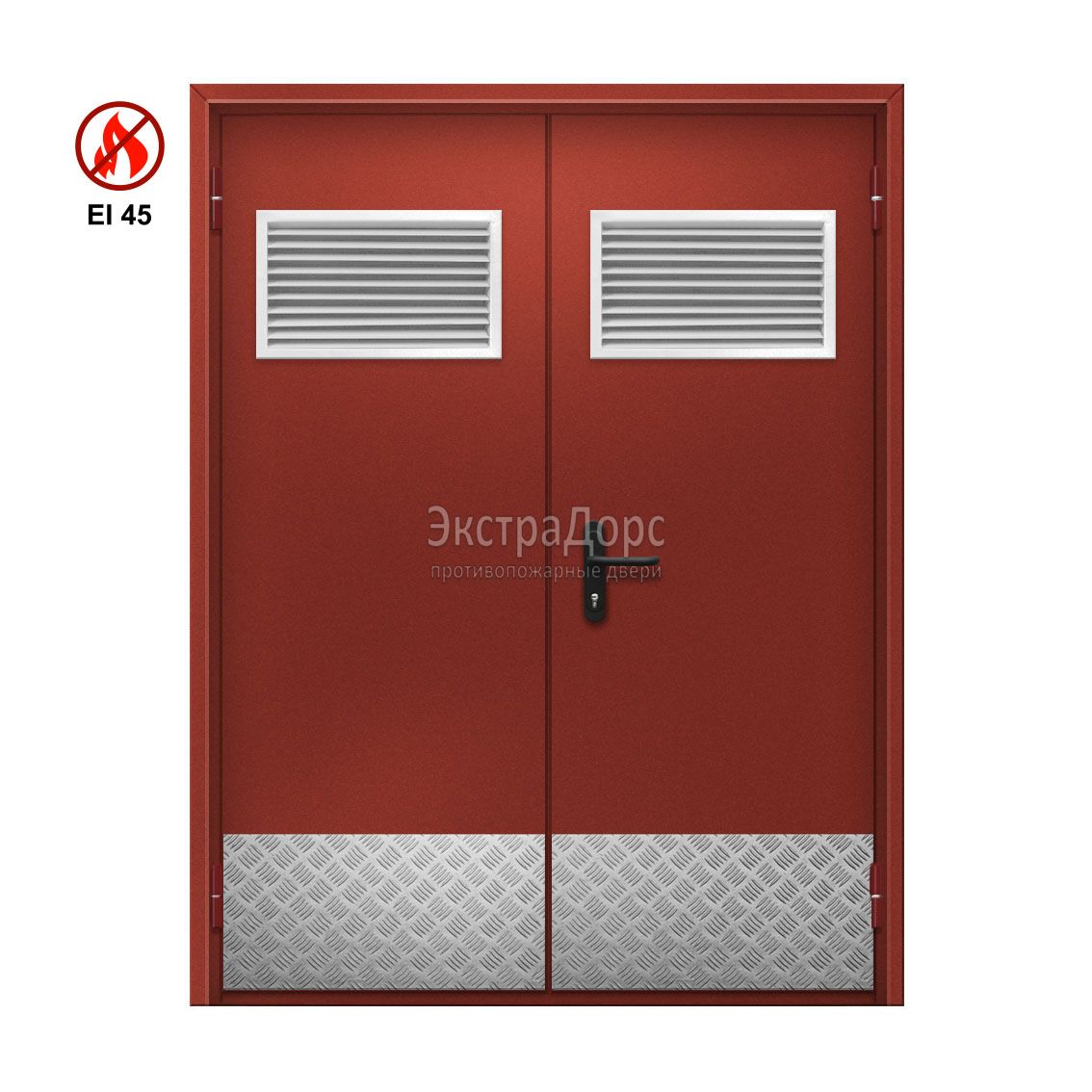 Двупольная огнестойкая дверь EI 45 ДГ-02-EI45 ДП123 двупольная глухая с решеткой в Сергиев посаде