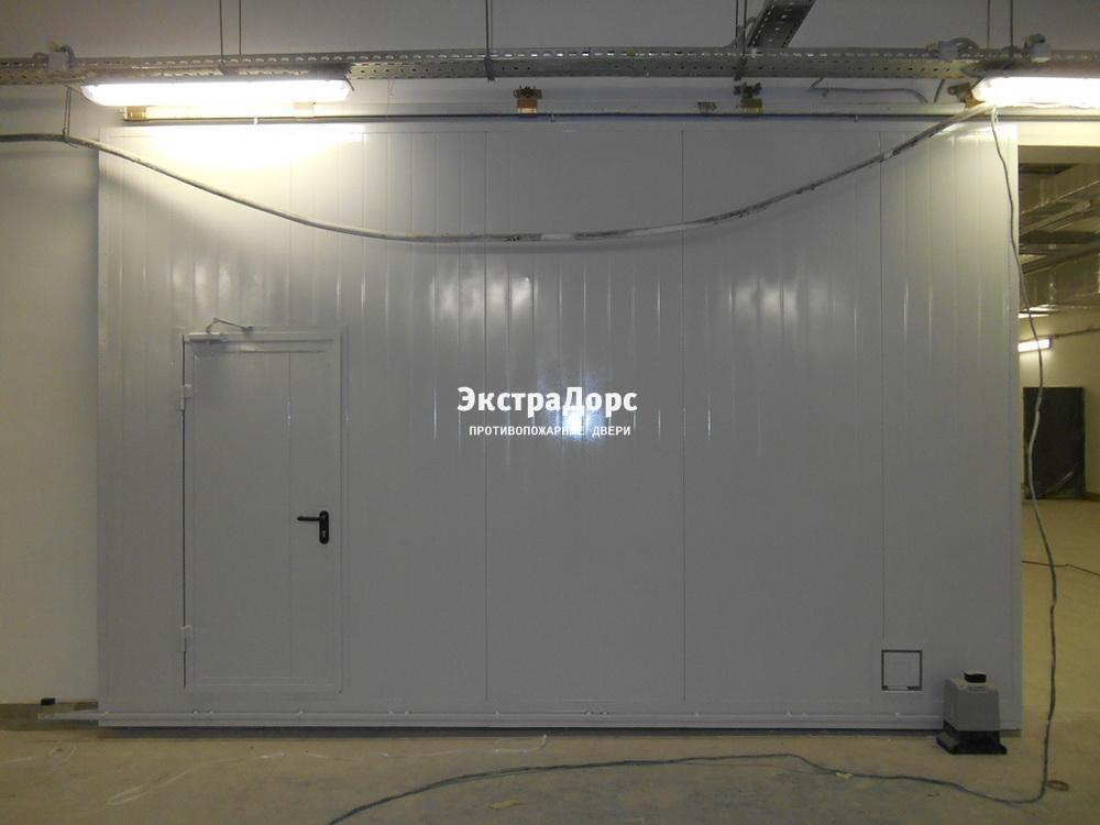 Автоматические откатные противопожарные ворота светло-серая