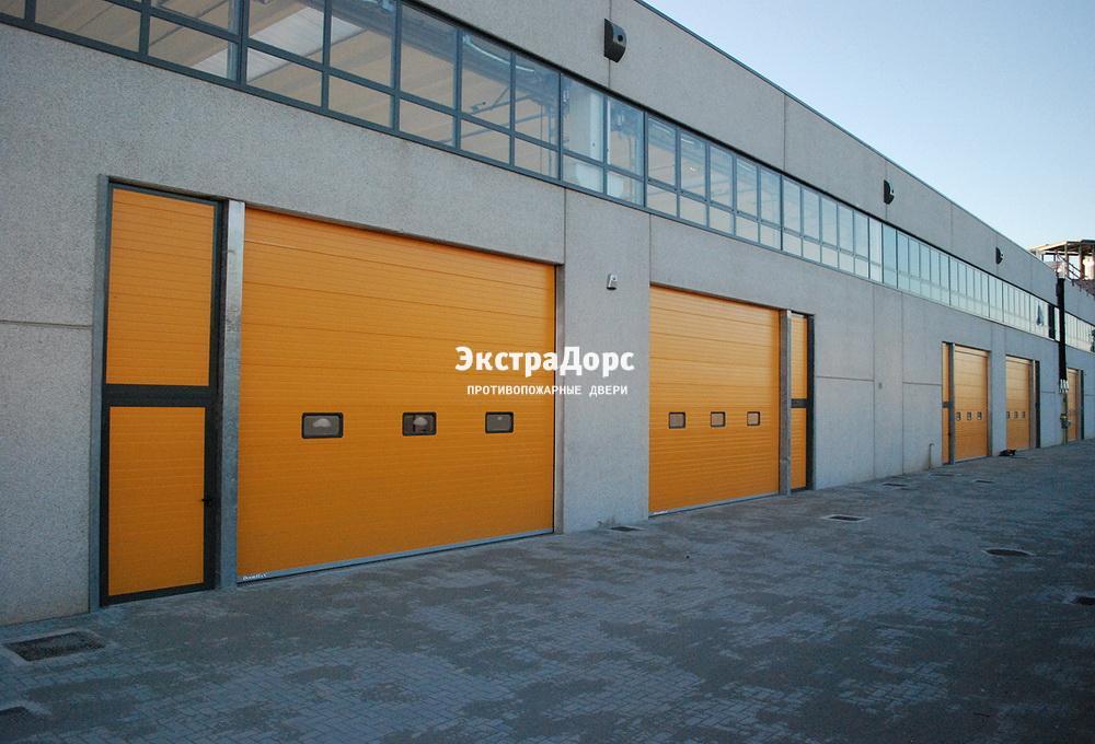 Желтые промышленные противопожарные ворота с окнами в Сергиев посаде