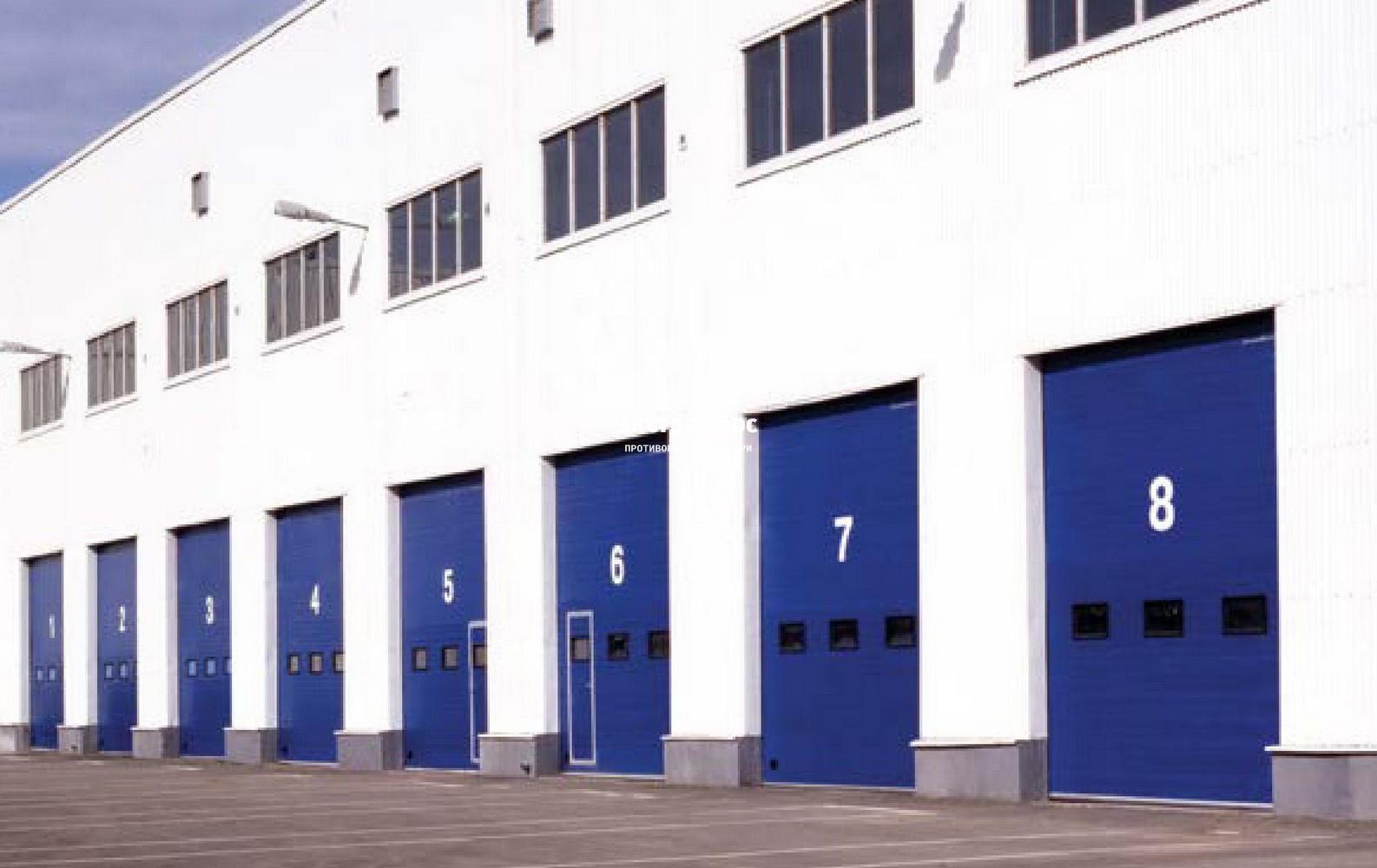 Синие огнеупорные промышленные ворота с окнами в Сергиев посаде