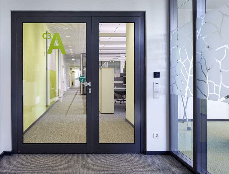 Противопожарная алюминиевая дверь со стеклом для офиса в Сергиев посаде