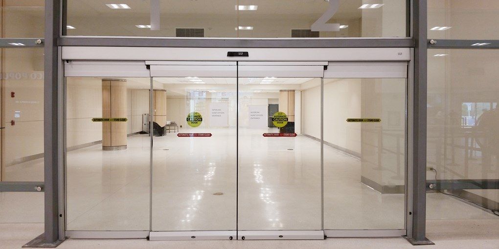 Противопожарная безрамная дверь со стеклом в бизнес центр в Сергиев посаде