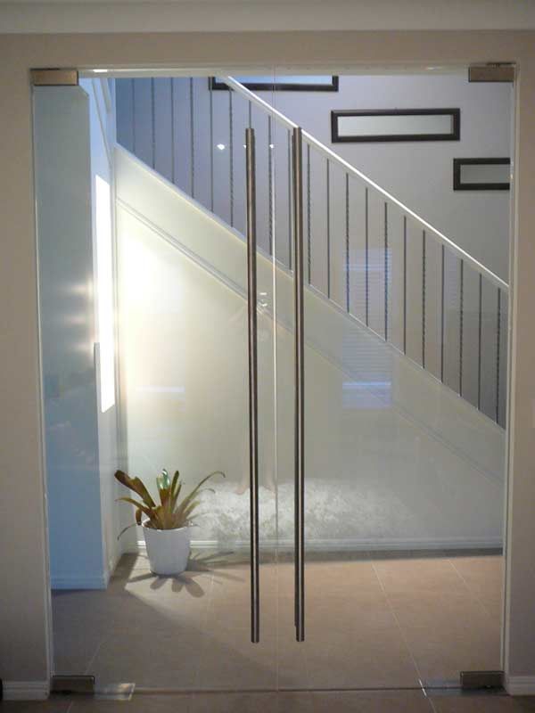 Противопожарная безрамная дверь со стеклом в частный дом в Сергиев посаде